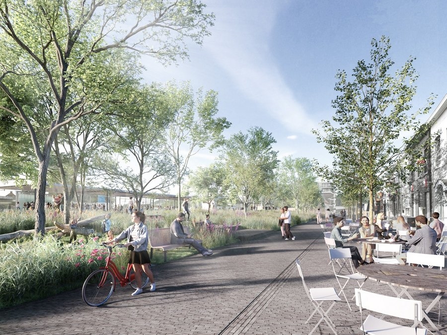 Bij het station streven we ernaar om alle vervoersmodi te groeperen in een nieuwe omgeving waar bussen, treinen, voetgangers, fietsers en automobilisten elkaar perfect aanvullen. Ook van het stationsplein wil het ontwerpteam een echt plein maken door het beeld van het marktplein door te trekken. Er komen brede voetpaden, smallere wegen, ruimte om te parkeren en om terrassen te plaatsen. Het wonen langs een drukke doorgangsweg wordt verleden tijd. Lees alles over het ontwerp van de nieuwe stationsomgeving